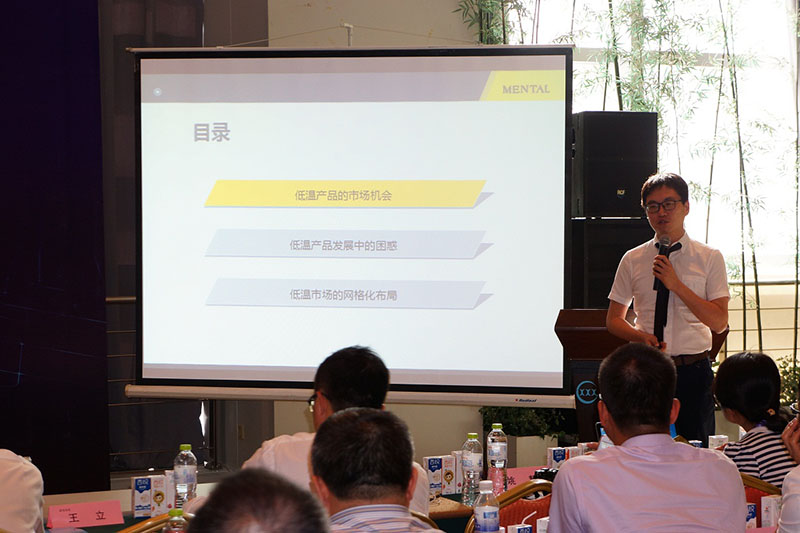 山东碧海包装材料有限公司总经理顾问兼市场总监王立首先介绍了“低温乳制品的包装创新”。当前乳品企业在最困难的时期,如何走出困境,建议从下面四个方面着手,一、产品结构,从低端向中高端转变;二、从常温向低温方向发展;三、做到专业化,做精、做细、做强;四、合作联盟,要走联合、联盟、资源整合的道路,来解决当前困局。他提出了将常温乳制品包装形式应用于低温乳制品的理念,即将常温奶产品的灌装包装形式应用于低温乳制品当中。这里指的主要是应用无菌纸盒灌装机和纸铝塑复合无菌包装材料(常温包装)来灌装包装低温乳制品(当然前处理的工艺及设备两者是不同的),这是一个颠覆式的跨界观念。目前,国内乳品企业已经开始在实践,并且收到了一定的效果。比如新疆西部牧业1升装巴氏鲜奶、山东临沂格瑞食品500毫升砖型巴氏奶。这些产品在0~6℃,保质期都是1周之内。 将常温乳制品包装形式应用于低温乳制品的优势有:产品质量的安全性提高了;产品的包装形式和品种多样化了;避免了企业的重复投资,同时包装材料本身成本降低了;带动了低温奶产品的深度营销,更方便互联网渠道的销售。