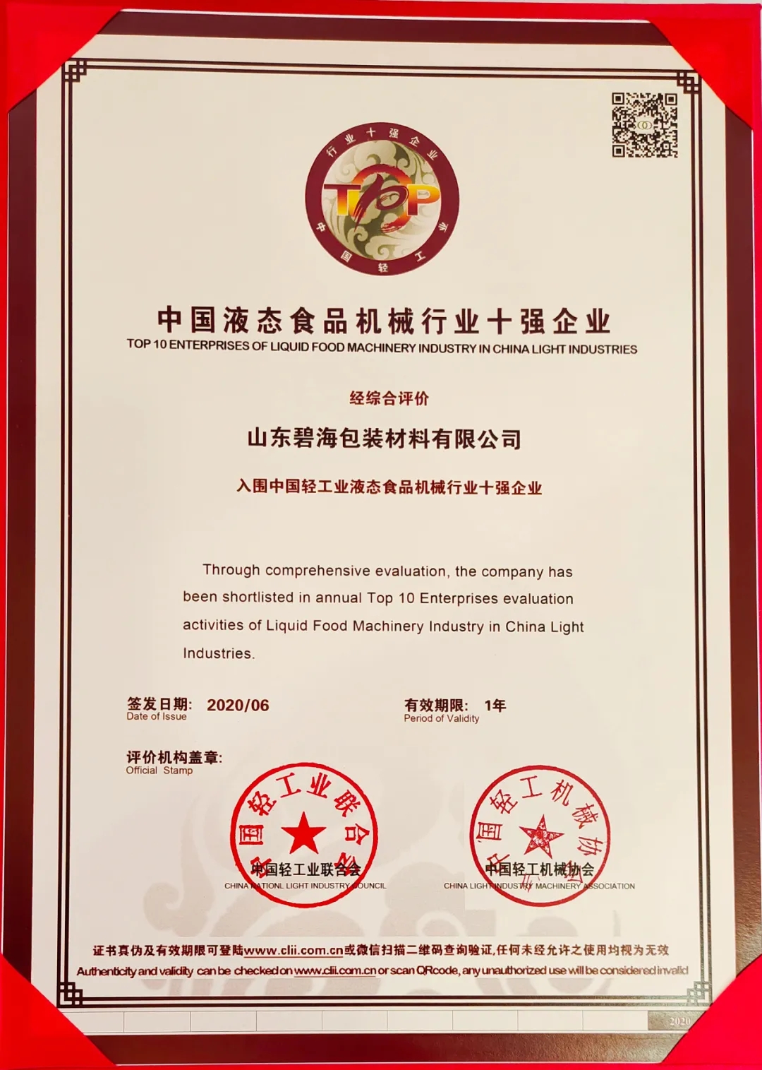 会上宣读了中国轻工业装备制造五十强企业、中国液态食品机械行业十强企业名单,碧海包装均位列其中。本次评选是贯彻党中央国务院关于加强科技创新、培育具有全球竞争力一流企业、建设制造强国系列战略部署的具体举措,是中国轻工业联合会、中国轻工机械协会以及社会各界对碧海包装综合能力和行业影响力的肯定和认可。