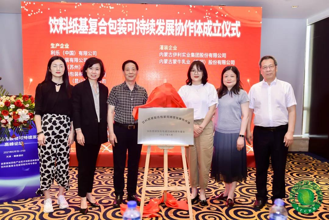 6月20日,山东碧海包装材料有限公司参加了资源强制回收产业技术创新战略联盟在天津举办的第七届再生资源回收产业大会。大会期间,公司作为联盟理事单位和饮料纸基复合包装回收利用专委会(以下简称:专委会)成员,参与并见证了“饮料纸基复合包装可持续发展协作体”(以下简称:协作体)成立暨揭牌仪式。